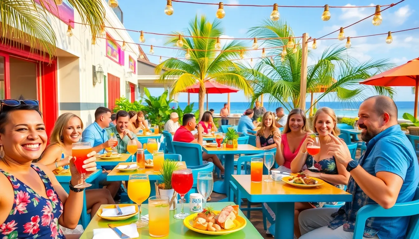 Decor elements also garner attention from patrons. Bright colors and playful decor create an inviting ambiance that enhances the overall experience. Outdoor seating receives acclaim for its comfortable arrangements under palm trees, providing a relaxing atmosphere that complements the restaurant’s tropical theme.
